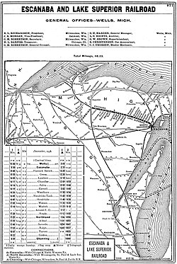 - ^ "History of the Escanaba & Lake Superior Railroad". elsrr.com. Retrieved July 4, 2021.