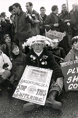 Brightlingsea port came to national prominence again in the 1990s with an attempt to use the port again for a controversial cargo. 'The Battle of Brightlingsea' is the name given to a series of protests against the live export of animals from the town for slaughter in Europe. Many people believed that the conditions in which the animals were exported, were cruel and inhumane. The protest began on 16 January 1995 and ended on 25 October 1995. During this nine-month period, over 150 convoys passed through the town and 250,000 animals were exported; of these, 24 died, 28 were destroyed by the M.A.F.F., and 38 could not be exported. 598 people were arrested by the police, of whom 421 were local residents. The campaigners eventually won and the live exports ceased. Over 1,000 complaints made against the police and the estimated cost of policing the protest was over £4,000,000.
