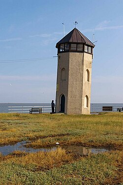 Bateman's tower was built in 1883 by John Bateman as a folly for his daughter to recuperate from consumption. The tower is sited on Westmarsh point at the entrance to Brightlingsea Creek on the River Colne, and is often mistaken for a Martello Tower. During The Second World War the original roof of the folly was removed so that the tower could be used as an observation post by the Royal Observer Corps. In 2005, a restoration project funded by The Heritage Lottery Fund took place to restore the tower to its original condition, including the fitting of a replica of the original roof, refurbishing the interior of the tower and also painting the outside.