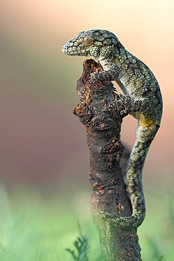 The Diplodactylidae are a family in the suborder Gekkota (geckos), with over 150 species in 25 genera.[2] These geckos occur in Australia, New Zealand, and New Caledonia.[3][4] Diplodactylids are the most ecologically diverse and widespread family of geckos in both Australia and New Caledonia, and are the only family of geckos found in New Zealand.[5][6] Three diplodactylid genera (Oedura, Rhacodactylus, and Hoplodactylus) have recently been split into multiple new genera.[7][8][9]
