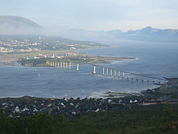 Sandnessund Bridge (Norwegian: Sandnessundbrua) is a cantilever road bridge that crosses the Sandnes Strait between the islands of Tromsøya and Kvaløya in Tromsø Municipality in Troms county, Norway. The Tromsø Bridge, the Tromsøysund Tunnel, and this bridge are the three road connections into the city of Tromsø on the island of Tromsøya.
