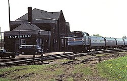Passenger service ceased upon the formation of Amtrak in 1971, but resumed between Minneapolis and Superior in 1975.[5] Wisconsin Governor Patrick Lucey spoke at the station dedication.[6] Superior was served by the Arrowhead and later the North Star between Chicago and Duluth.[5] Service ceased in 1984.[7] The depot continues to exist as a business.