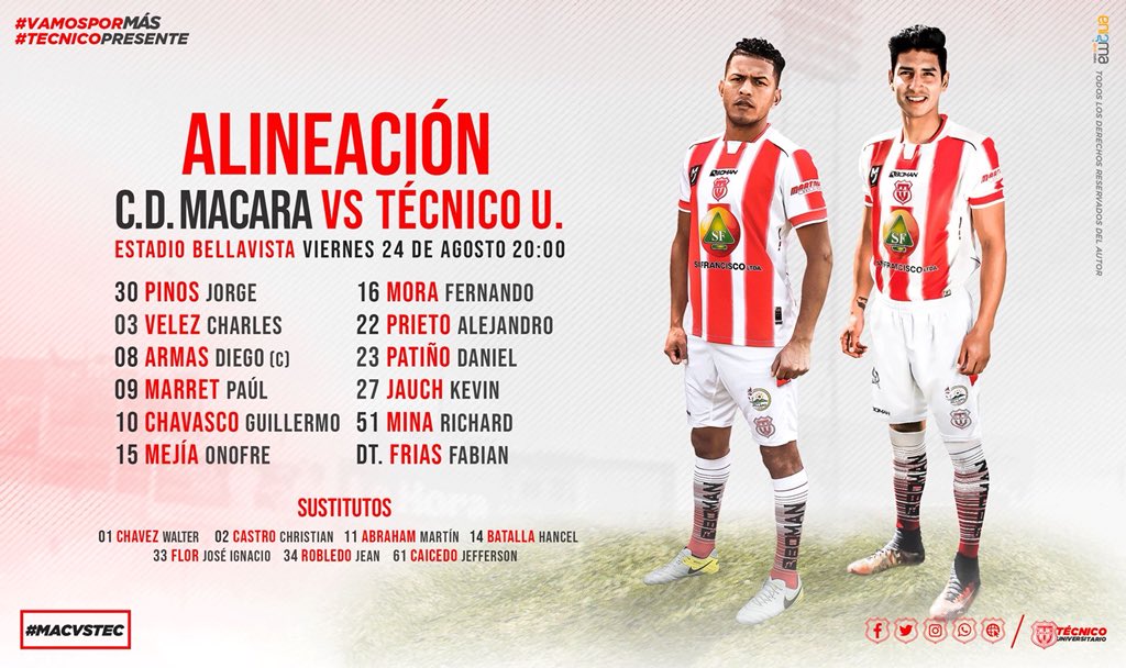 - Técnico Universitario - Titular (branco e vermelho), Reserva (vermelho) e Terceiro, Titular, Reserva; Boman é a fornecedora do time.
