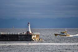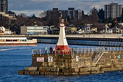 Ogden Point is a deep water port facility located in the southwestern corner of the city of Victoria, British Columbia, Canada. Its advantageous geographic location on the southern tip of Vancouver Island, by the Strait of Juan de Fuca, close to major population centres Vancouver and Seattle, has made it an attractive cruise ship destination. It also serves as a ship repair and supply facility for cruise ships and other vessels such as deep sea cable laying ships. Ogden Point also has a heliport with frequent service to Vancouver Harbour, Vancouver International Airport, and Seattle. The port lies at the eastern entrance of Victoria Harbour. For smaller boats there is boat ramp for trailerable boats.