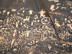 [edit]Plains make up much of the eastern portion of the West, underlain with sedimentary rock from the Upper Paleozoic, Mesozoic, and Cenozoic eras. The Rocky Mountains expose igneous and metamorphic rock both from the Precambrian and from the Phanerozoic eon. The Inter-mountain States and Pacific Northwest have huge expanses of volcanic rock from the Cenozoic era. Salt flats and salt lakes reveal a time when the great inland seas covered much of what is now the West.