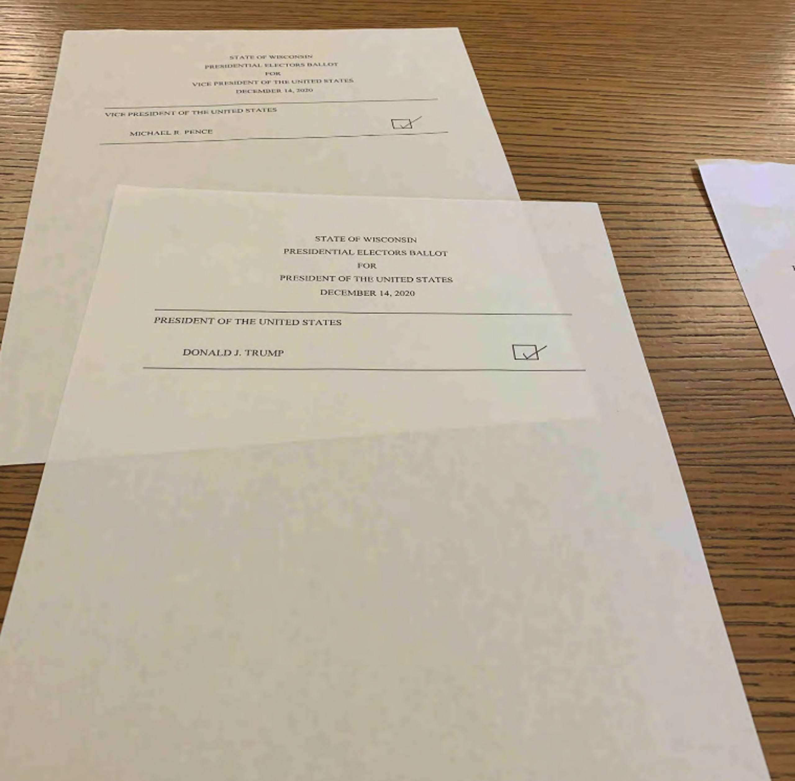 Hi, I am reposting my request with the hope of better luck. Now, with the understanding that the thing itself is worthless as obvious, the image in the link depicts fake Arizona electors casting their “votes” on a fake ballot for Trump in 2020. If you look at the image, I even tried to enlarge it but couldn't understand much, how were these “electors” casting this fake vote? The ballot seems drawn in such a way that maybe they had to put their signatures on it, but you can't see much. It's just a little curiosity, but I want to take it off anyway. Thank you. [11]93.150.82.80 (talk) 22:31, 31 October 2025 (UTC)[reply]